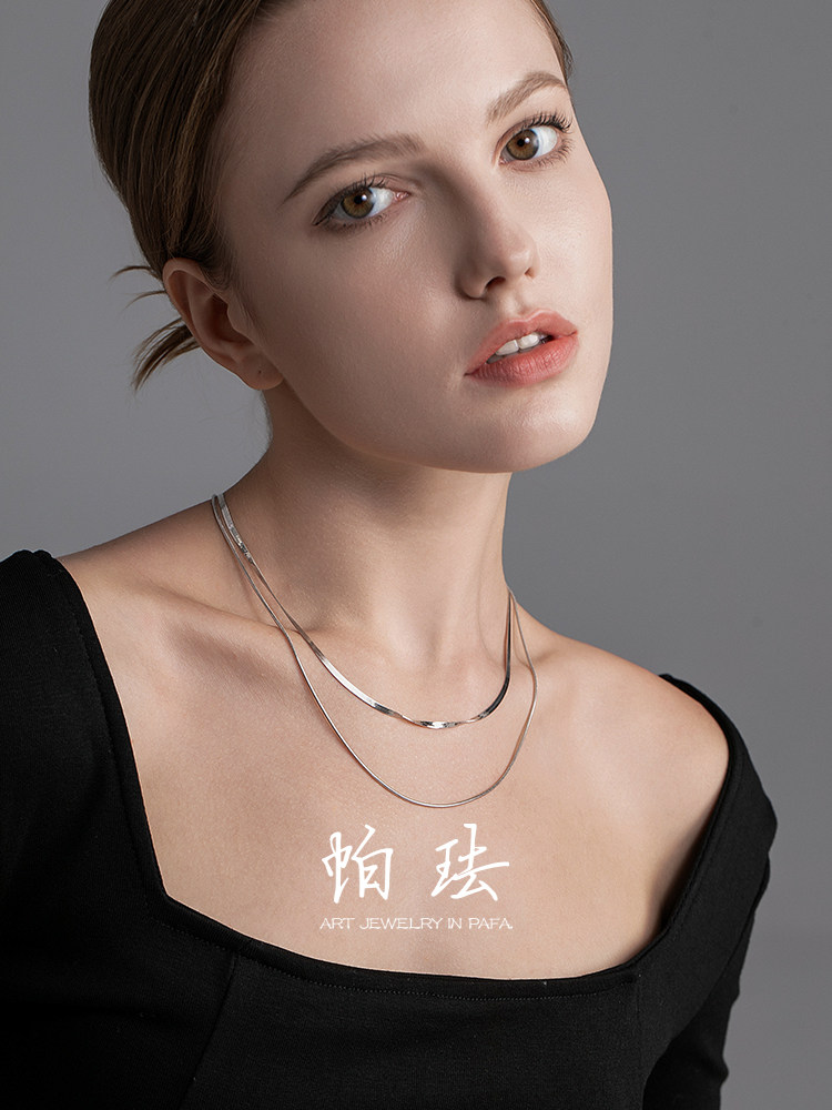 【Sujian】Pafa Artistry·Collection S925 Silver Plated with 18K White Gold Elegant Snake Bone Necklace