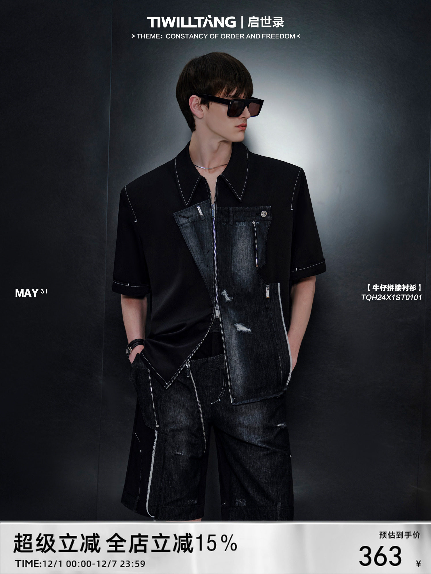 Qishilu Tiwilltang "Echo of Traces" Deconstructed Patchwork Shirt and Jeans Set