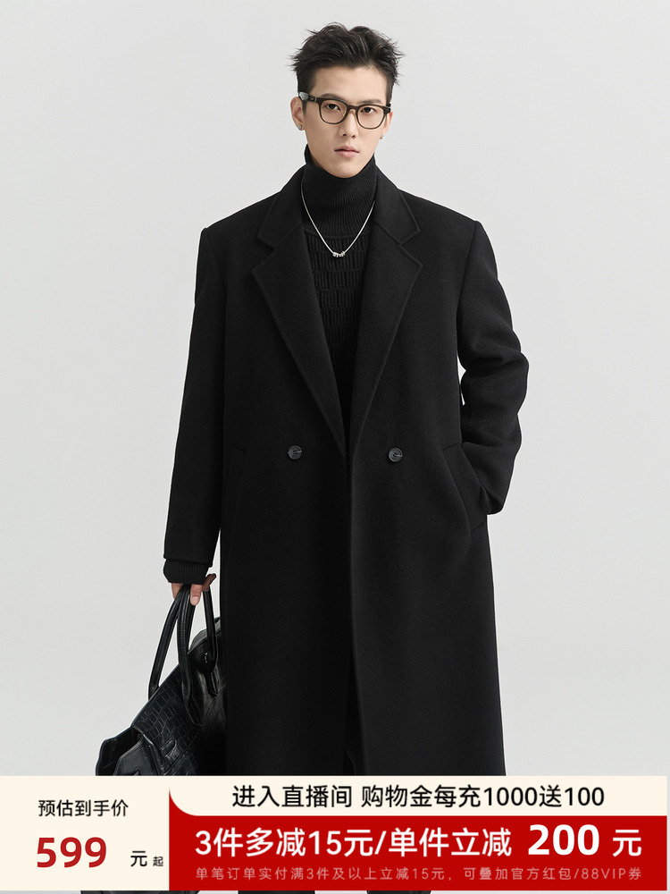 W2X2025 Autumn and Winter New Style 100% Pure Wool Double-Sided Woolen Coat Men's Mid-Length High-End Woolen Jacket
