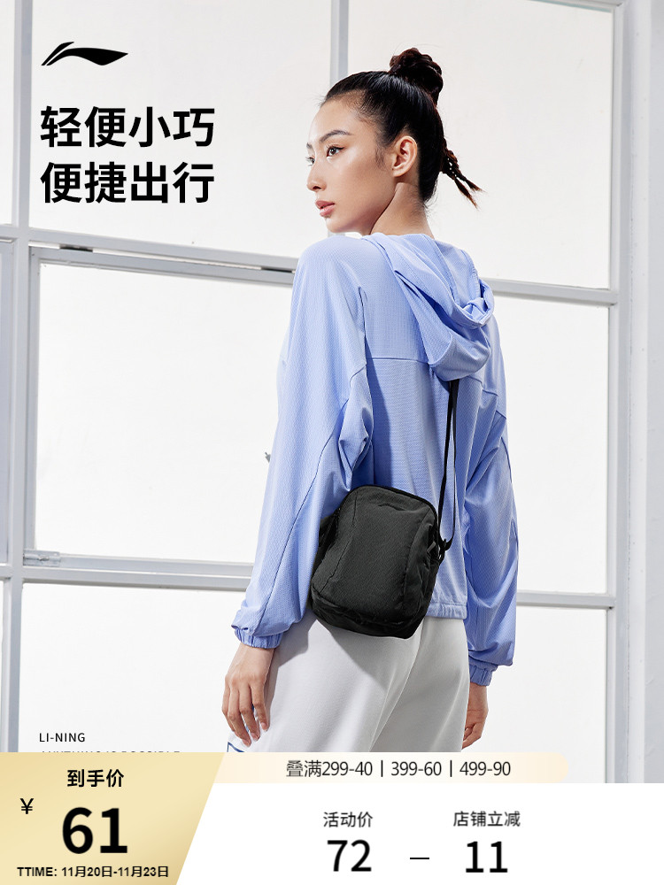 Li-Ning Single Shoulder Bag Crossbody Bag for Men, Genuine Black Reflective Running Training Portable Sports Bag Casual Bag Waist Bag for Women