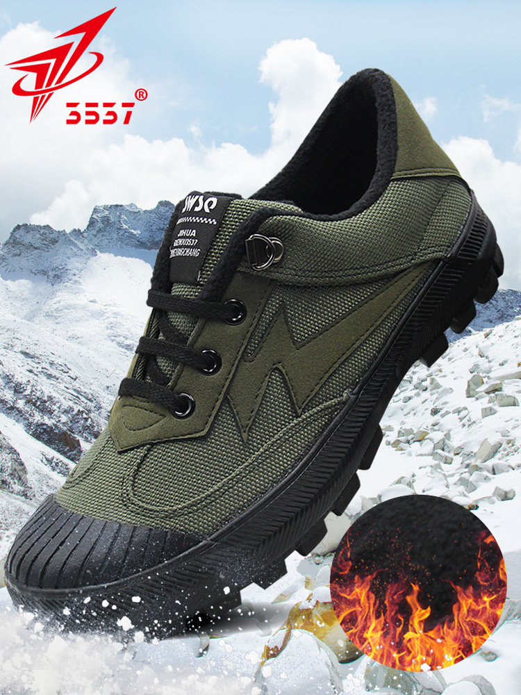 Jihua 3537 Genuine Liberation Shoes Men's Winter New Training Shoes Fleece-Lined Thickeneded Labor Protection Rubber Shoes Wear-Resistant Construction Site Shoes