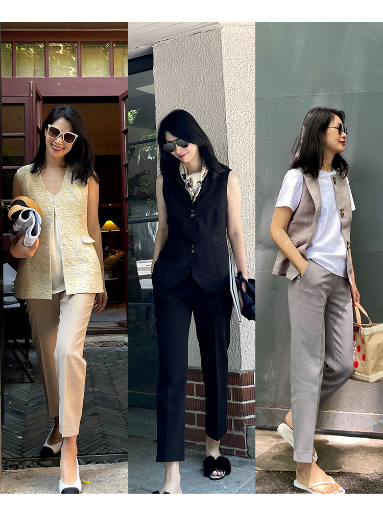Amandax's "Timeless and Wrinkle-Resistant, Anti-Static, Mid-High Waist, Cigarette-Leg Nine-Point Pants in Acetate Fabric That Doesn'T Get Buried by Time."