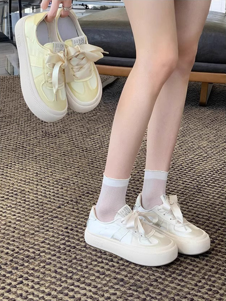 Hong Kong Spliced Satin Thick-Soled Height-Increasing White Sneakers for Women 2025 Spring and Summer Casual Sports Sneakers Versatile Round Toe