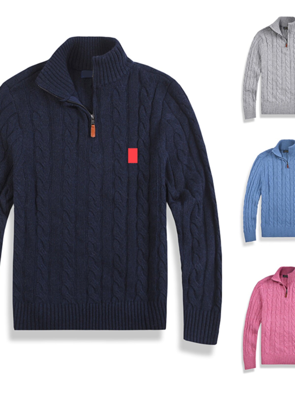 Autumn and Winter Woolen Sweater for Men, Half-High Collar, Zipper, Twist Knit Pullover, Lapel, Stand Collar, Casual Knitwear Jacket