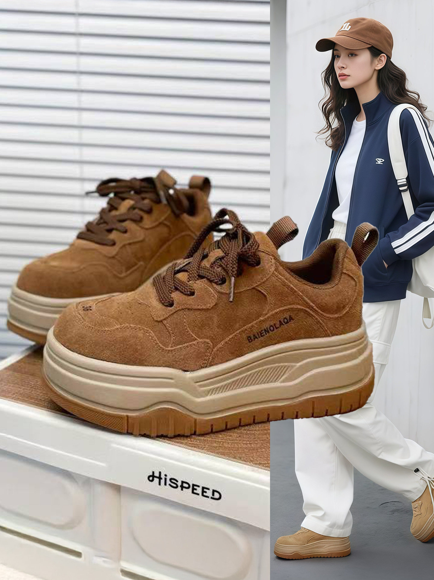 Hong Kong Matte Genuine Leather Thick-Soled Height-Increasing Casual Sneakers for Women 2025 Autumn Fashion Versatile Lace-Up Melard Platform Shoes