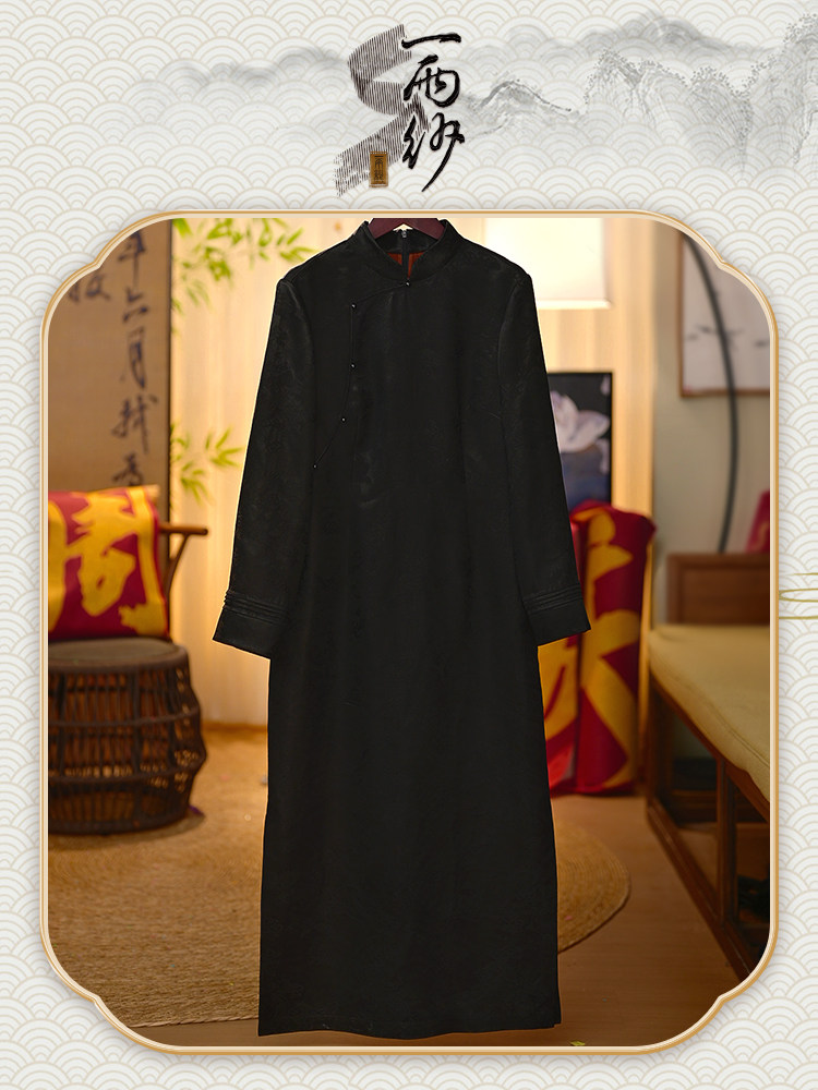[Dragon Satin Cheongsam] 239590 Mulberry Silk Heavy Satin Jacquard Leather Fragrant Cloud Gauze Dress Robe New Chinese Style