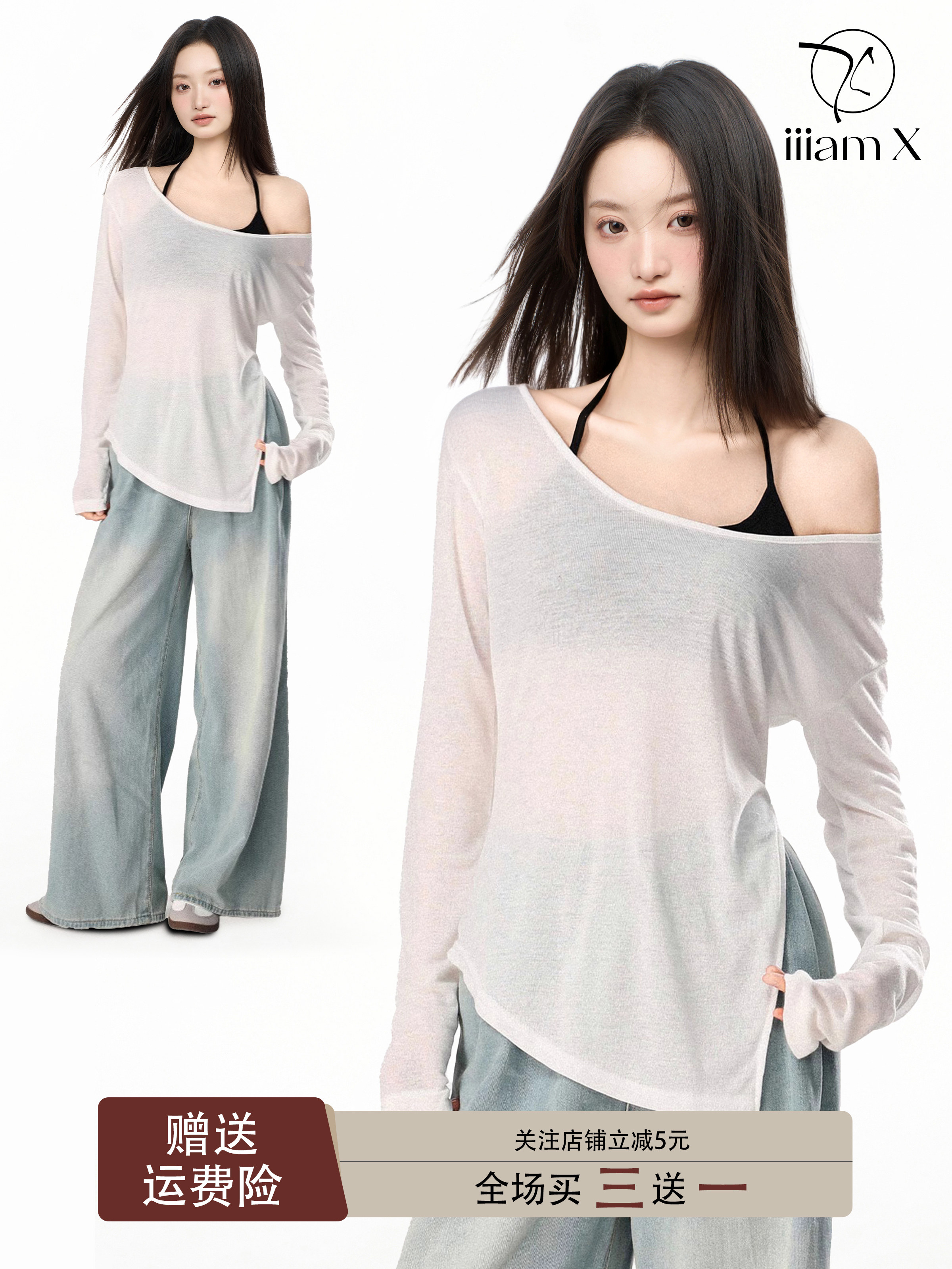 Iiiamx White Sun Protection Off-Shoulder Cover-Up T-Shirt for Women, Summer Ice Silk Lightweight Beach Swimwear Sun Protection Top Summer