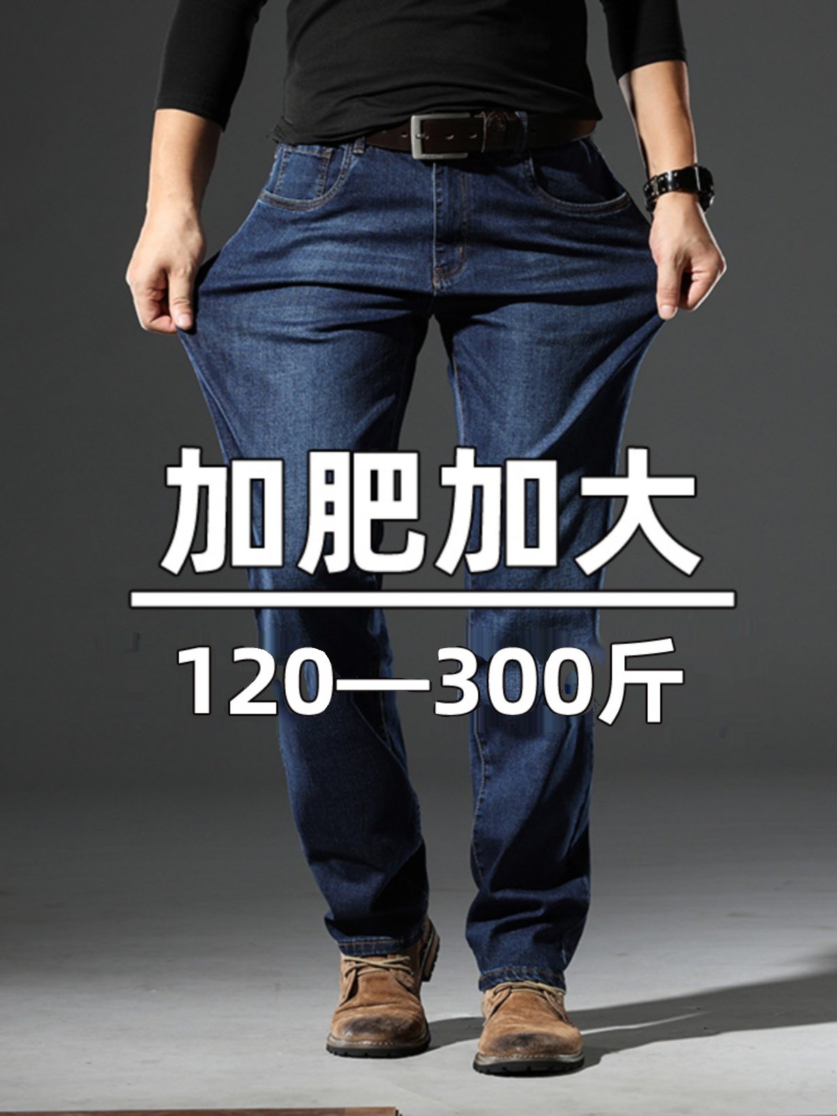 Autumn and Winter Loose Straight-Leg Jeans for Men, Large Size, Stretchy, Plus-Size, Extra Large, High-Waisted, Fleece-Lined Denim Pants