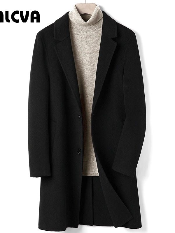Light Luxury Winter Double-Sided Wool Cashmere Coat for Men, Mid-Length, Thickened, Plus Size 4X5X, Slim Fit Wool Workwear Jacket