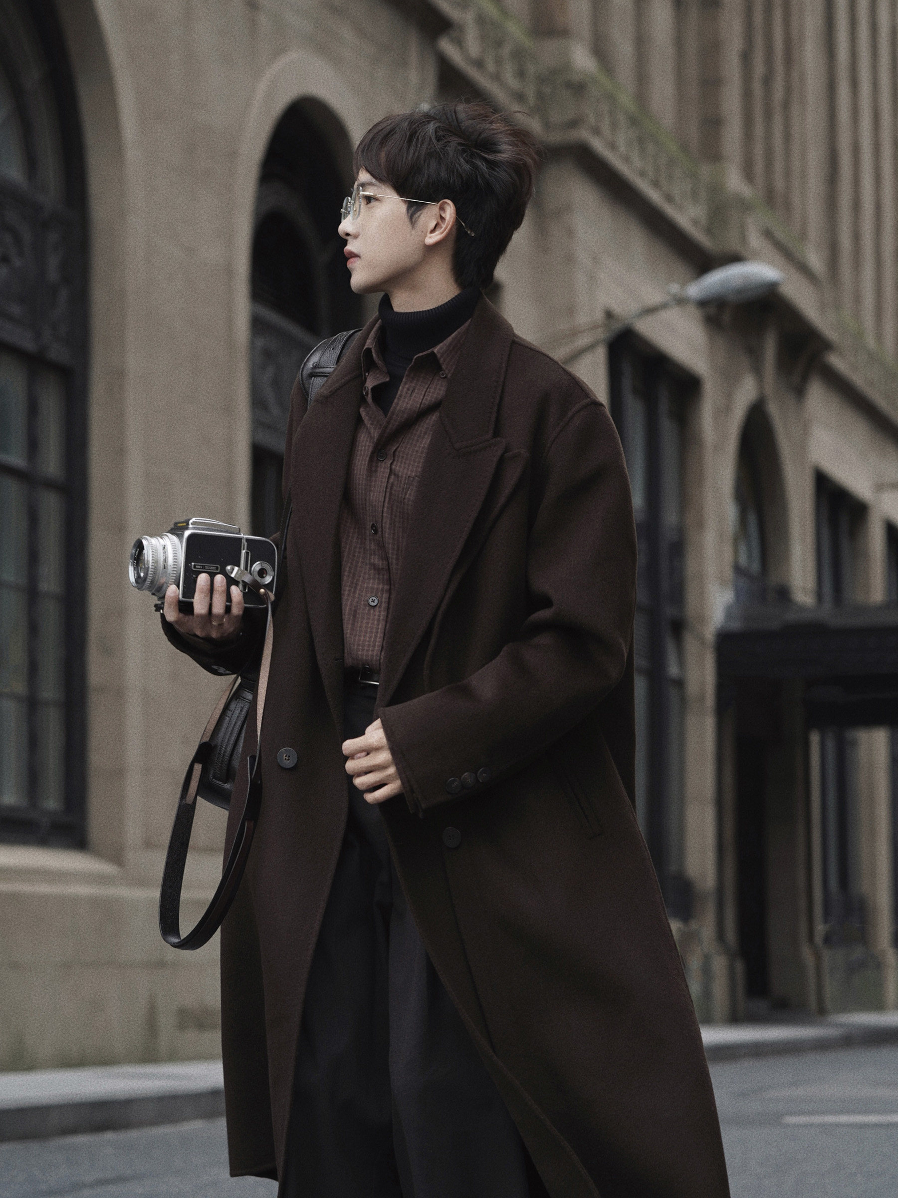 Eli【Norwegian Cedar】Double-Collar Design Australian Merino Wool Double-Sided Woolen Long Coat