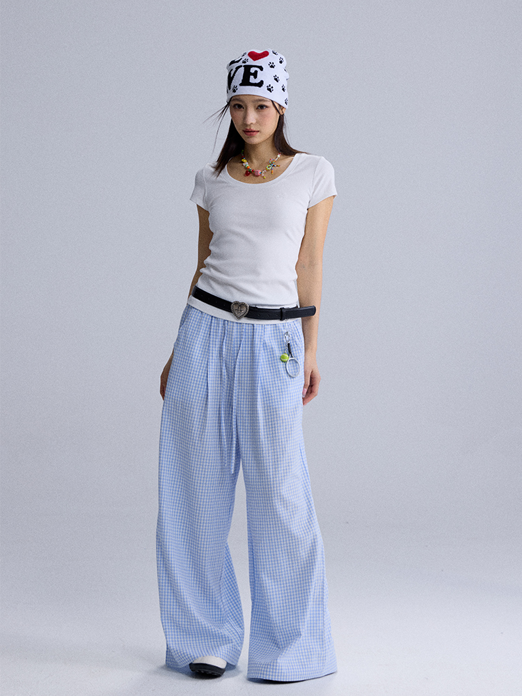 Heyabc Spring/Summer New American Style Simple U-Neck Short Sleeve Women's 2025 Versatile Slim Fit Base Shirt T-Shirt