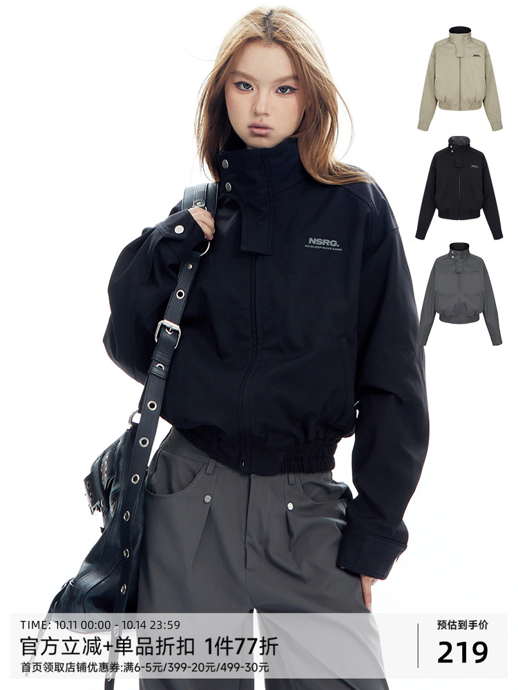 Apea American Retro Functional Style Jacket for Women, Autumn Stand-Up Collar Top, High-End Outdoor Windbreaker