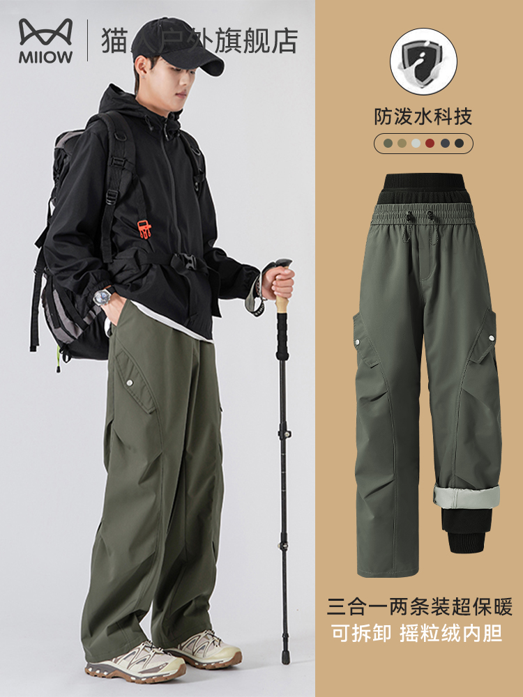 Catman 3-in-1 Softshell Pants for Men, Autumn and Winter, Triple Protection, Fleece-Lined, Warm, Windproof, Waterproof, Workwear, Hiking Pants