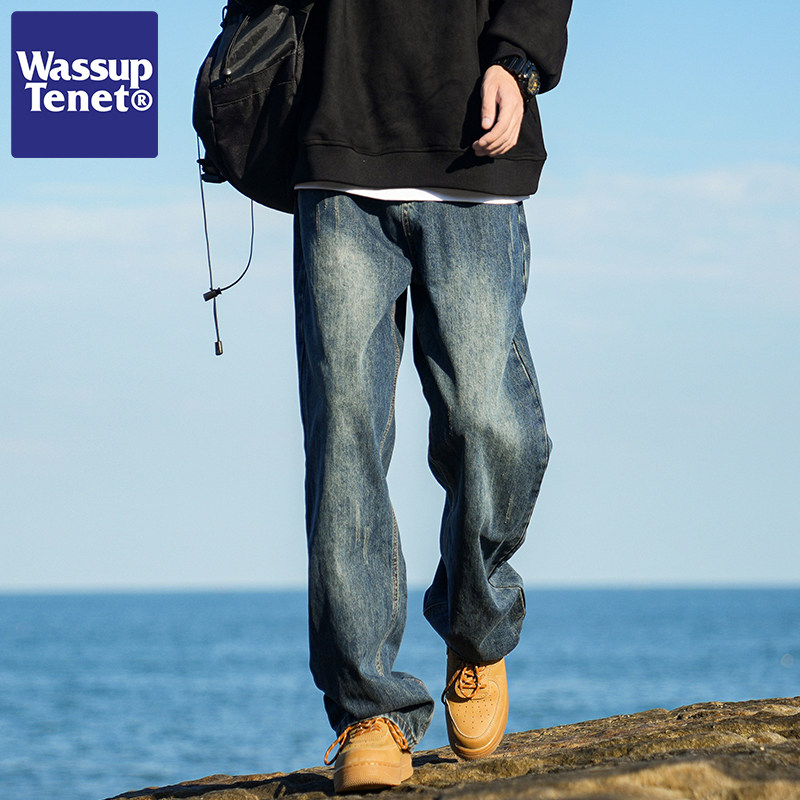 Wassup Tenet Trendy Brand Washed Straight-Leg Jeans for Men, New Autumn Style, Loose High-Street Casual Long Pants