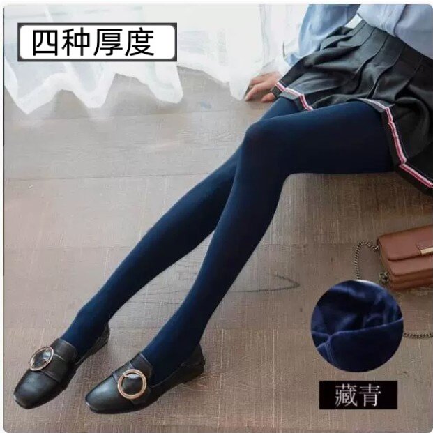 Japanese Style Autumn and Winter Thickened Fleece-Lined Pantyhose Navy Blue Student Socks Thin Fleece Socks Warm Pantyhose Slimming Leg Socks
