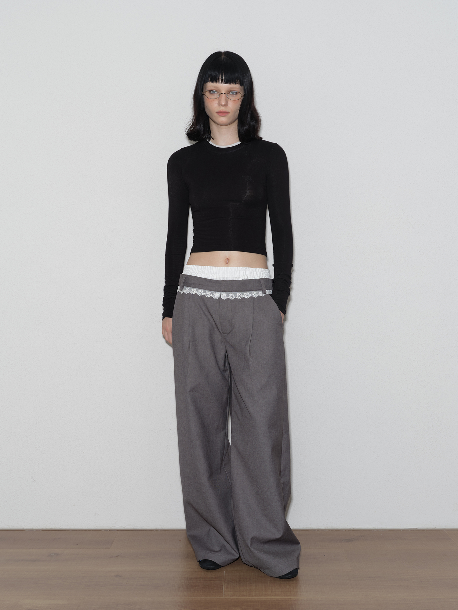 2Am Poetry [Same Style as Huang Lizhi and Tian Xiaojun]'Classy Escape' Lace Spliced Casual Loose Trousers