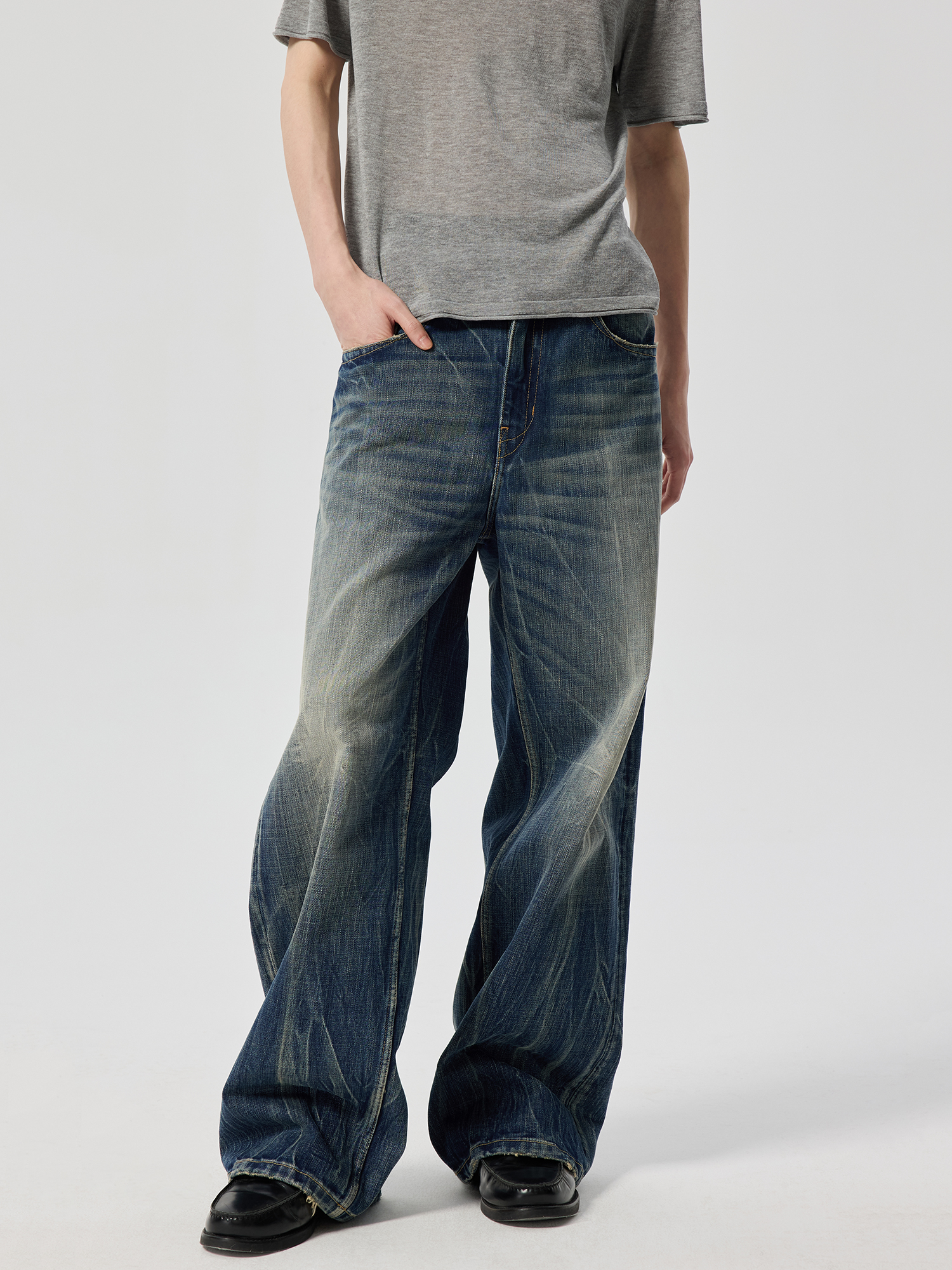 American-Style Washed Vintage Sweatpants for Men, Autumn Trendy Brand Deconstructed Patchwork Wide-Leg Pants, Niche High Street Versatile Casual Pants