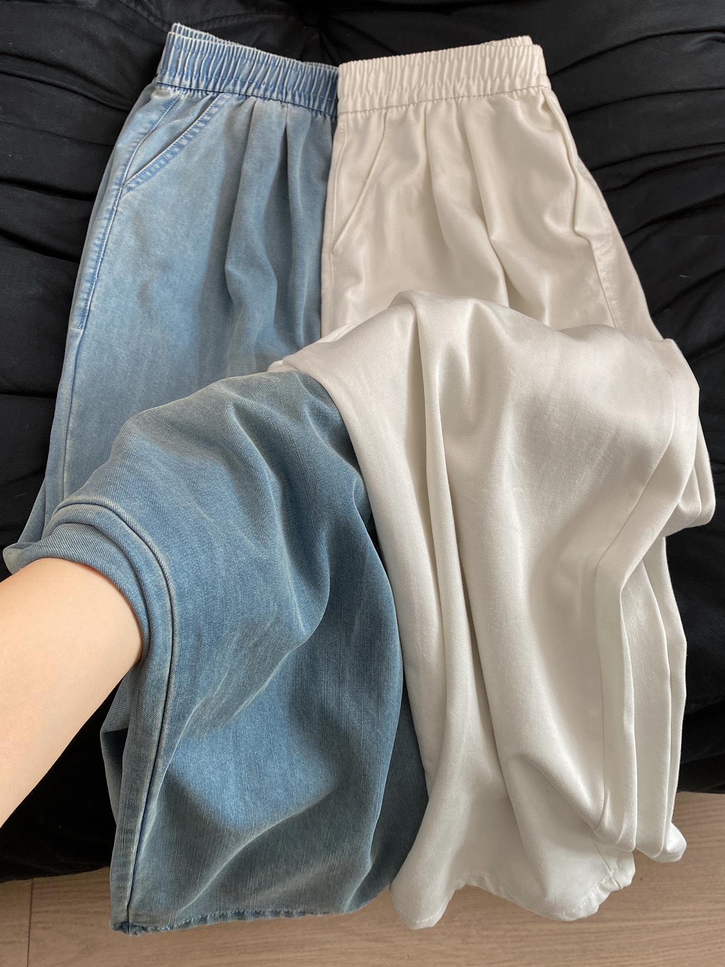Women's Jeans, Summer Thin Style, Plus Size, Loose Fit, Slimming, Casual, Petite, Autumn and Winter Fleece-Lined Wide-Leg Pants