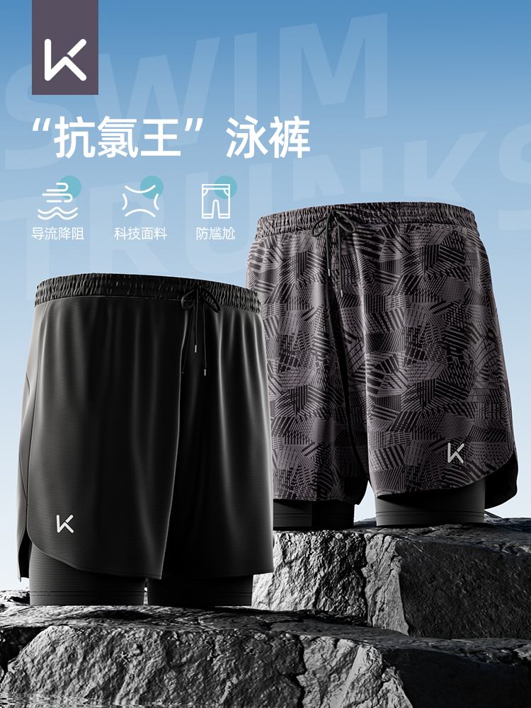 Keep Swimming Trunks for Men, New Double-Layer Anti-Embarrassment Adult Large Size Professional Swimming Trunks, Swimming Goggles, Swimming Cap, Hot Spring Set