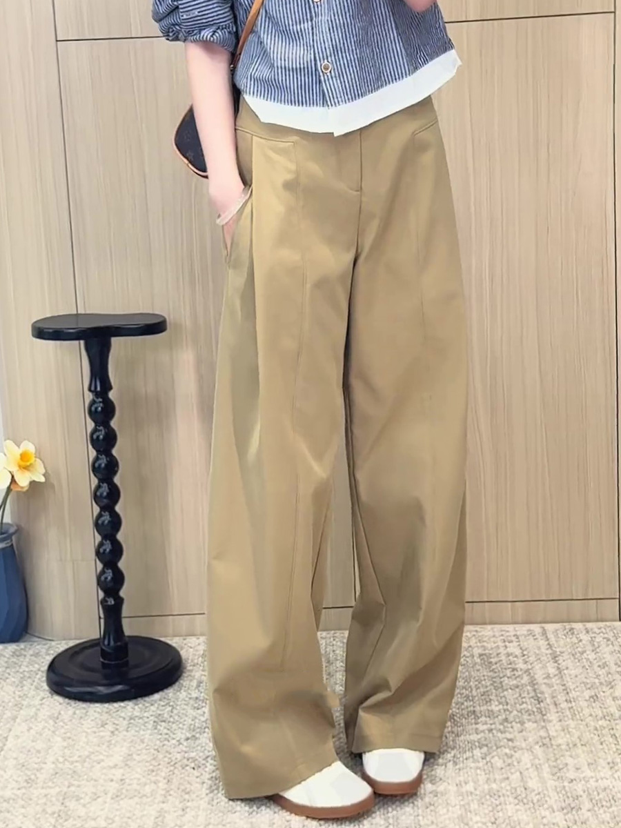 Vintage Wide-Leg Coffee-Colored Pants for Women, 2025 Spring and Autumn New Style, Brown Old Money Style Design, Khaki Suit Pants