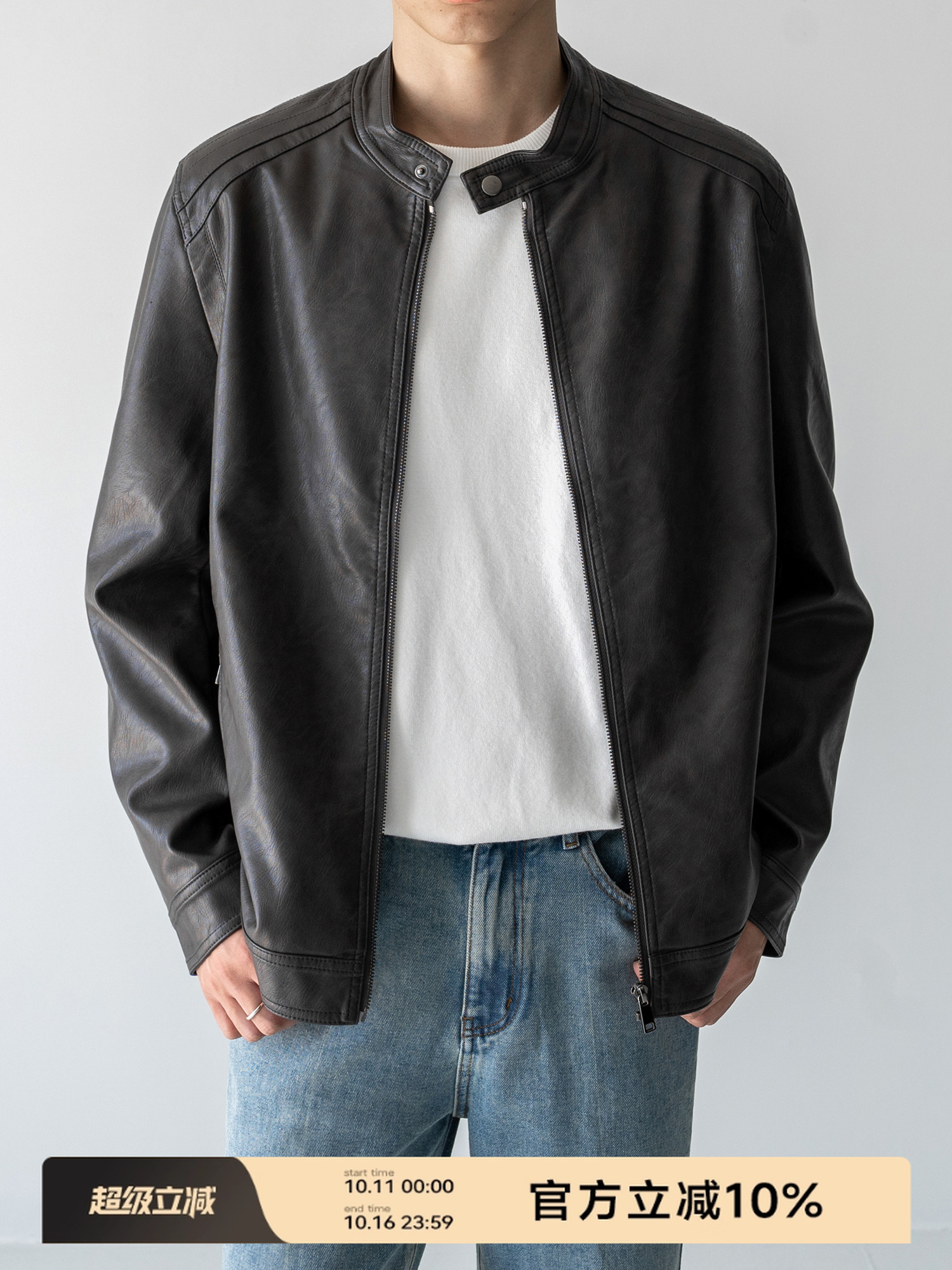 Ownr Black Melard Stand-Up Collar Leather Jacket for Men 2025 Autumn New American Retro Casual Leather Coat
