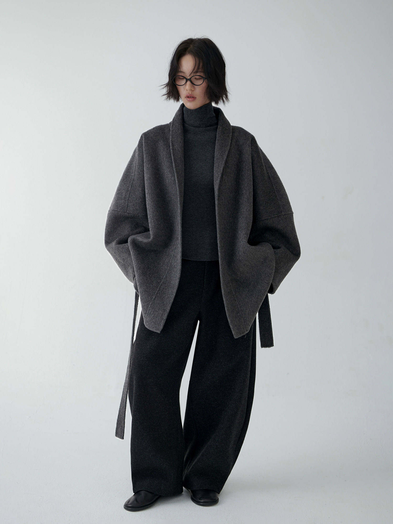 Flowing Lines of Clouds and Water~Tt Pure Wool Double-Sided Woolen Silhouette Lapel Coat, Retail Price 5900 16