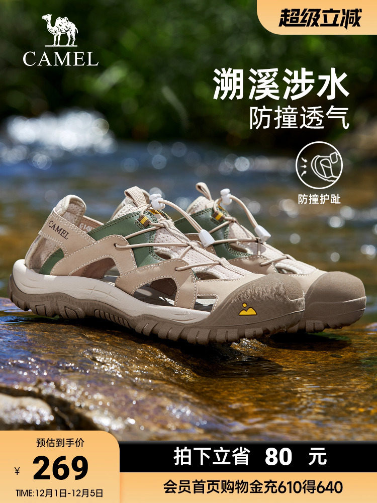 Camel 2025 Summer New Genuine Leather Sandals for Men and Women, Breathable, Non-Slip, Couple Outdoor Beach and River Trekking Closed-Toe Sandals