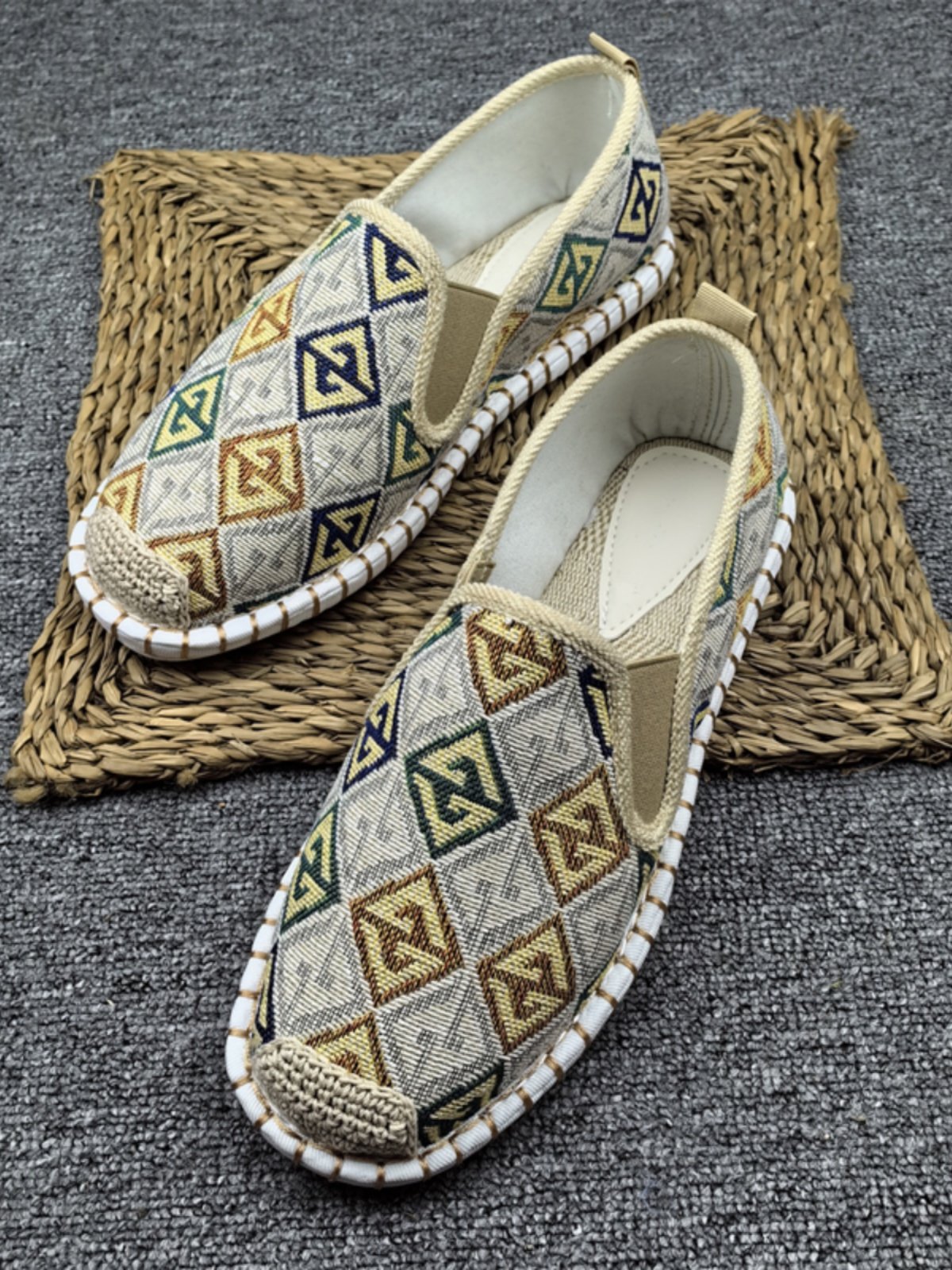Elderly Men's Slip-On Soft-Soled Cloth Shoes, Men's Casual Shoes, Lightweight Men's Shoes, Breathable Old Beijing Canvas Shoes for Men in Summer