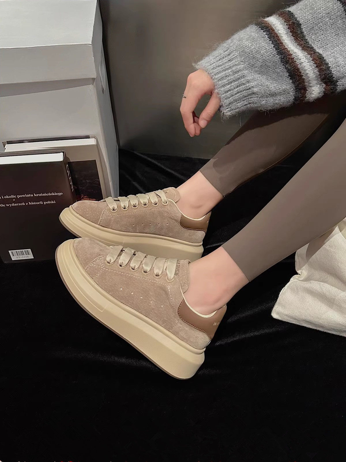 Zhang Linghe's Same Style Belle Runway Formula Racing Shoes, New Cotton Shoes, Thin-Soled Red Training Shoes, Women's Shoes Pre-Order