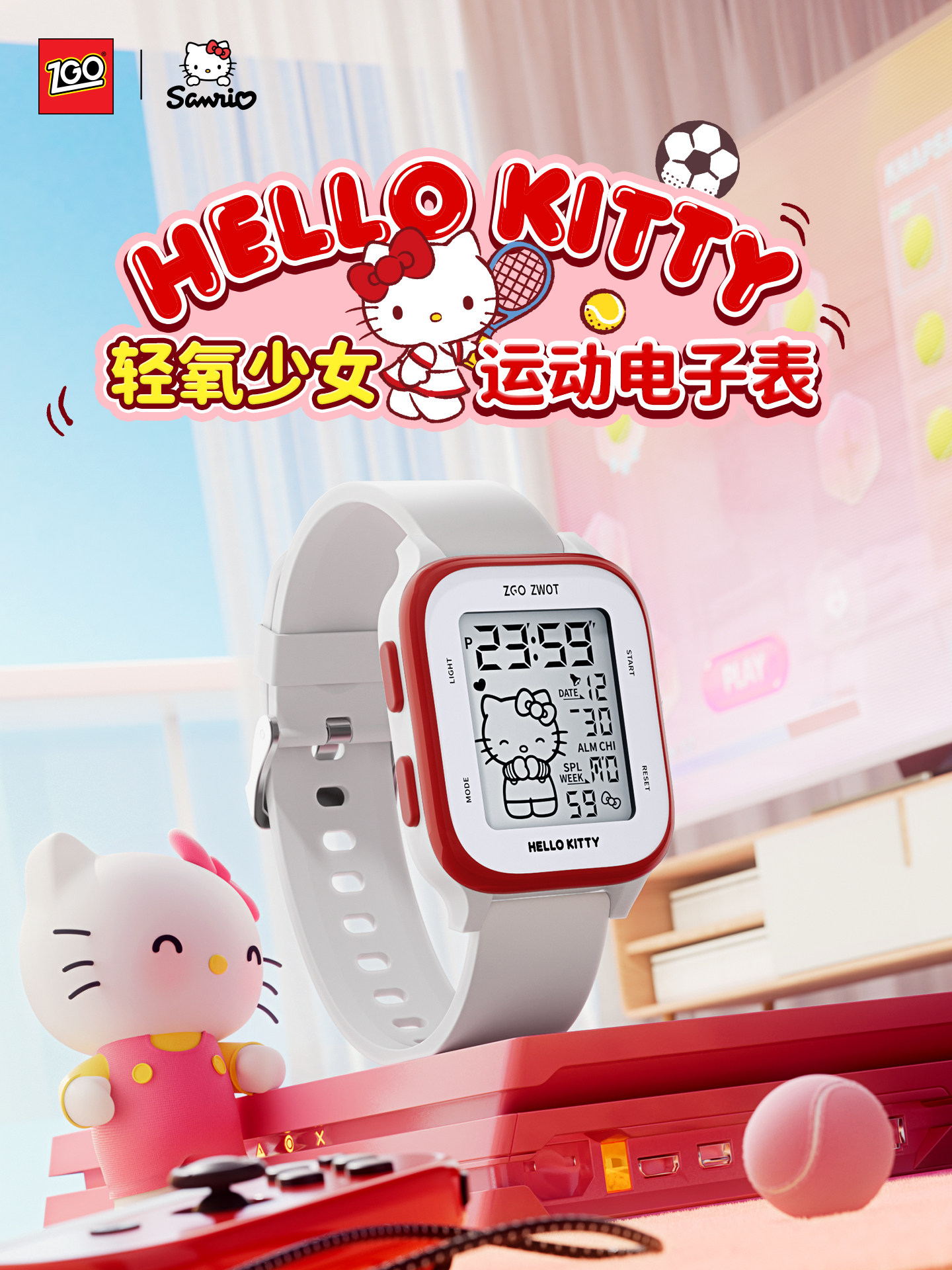 Zhenggang Zgoxhellokitty Watch for Women, Student Model, Only Shows Time, Children's Red Electronic Watch for Junior High School Girls