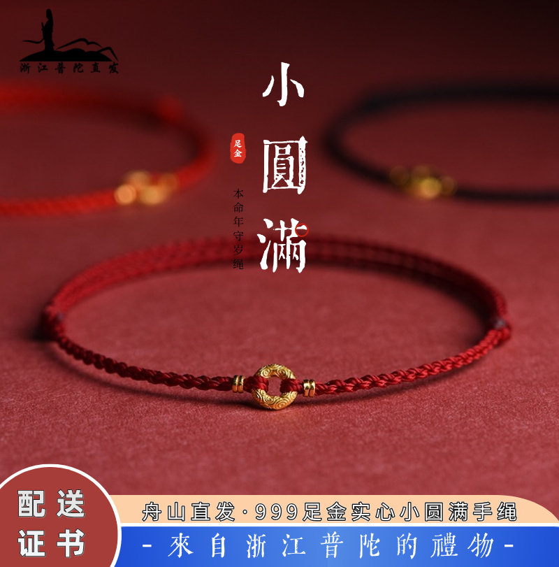 Putuo Straight Gold Peace Pendant Solid Zodiac Year of the Horse Red String Bracelet Wish Ring for Men and Women Couple Gift Anklet