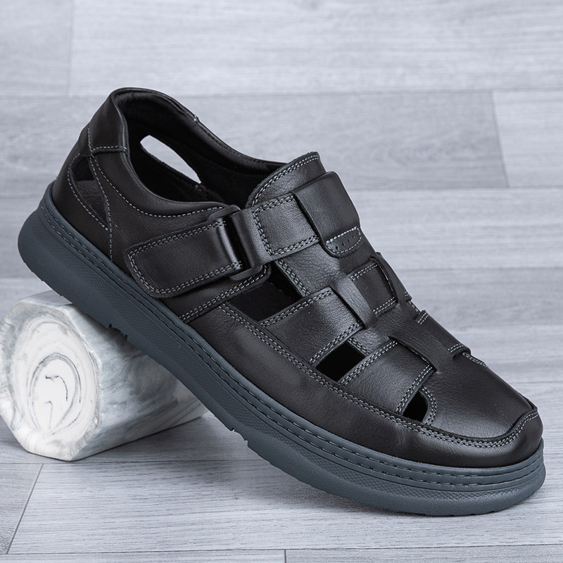 Genuine Leather Sandals Summer Breathable First-Layer Cowhide Soft-Soled Soft-Surface Casual Shoes Clogs Lightweight Thick-Soled Cut Out Men's Shoes