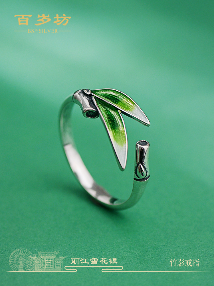 Baisuifang 925 Silver Bamboo Shadow Silver Ring for Women Enamel Ring Niche Light Luxury High-End Jewelry Gift for Girls