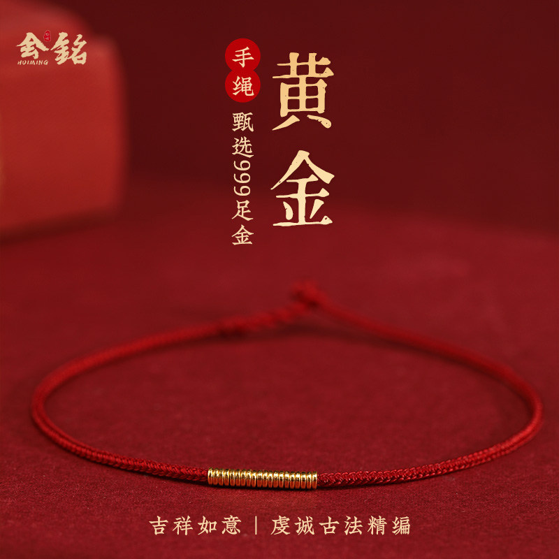 New Design 999 Pure Gold Exquisite and Simple Red String Bracelet with Gold Small Rings Woven Ultra-Fine Good Luck Bracelet for Women and Men