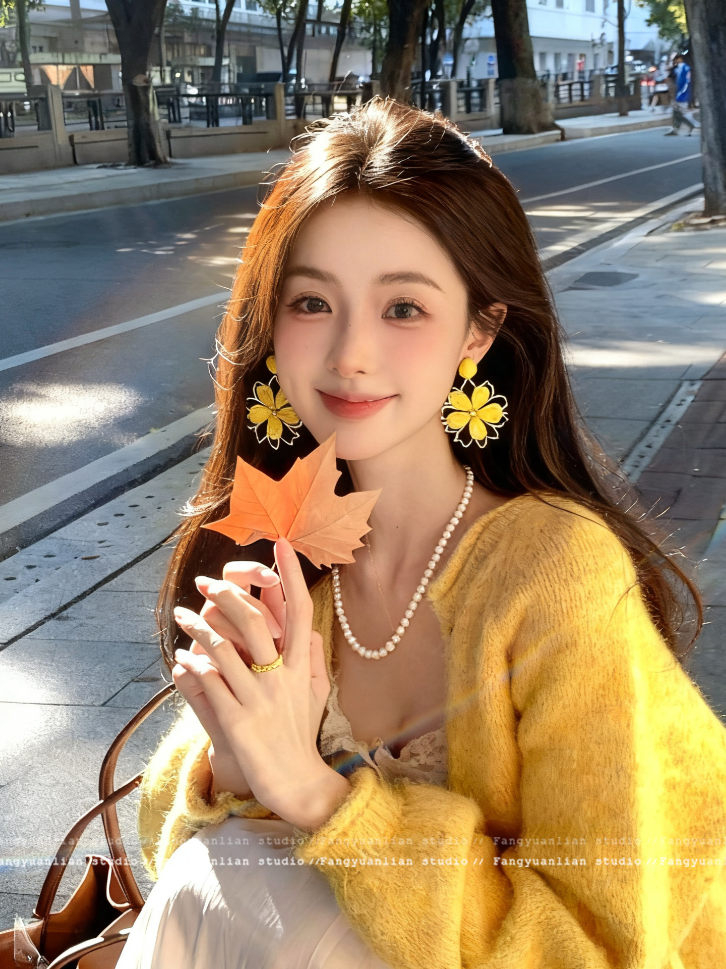 Wind-Blown Island Vacation Style Woven Sunflower Earrings for Women, High-End Earrings, Exaggerated Seaside Stunning Ear Studs
