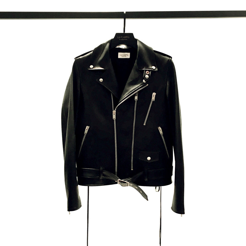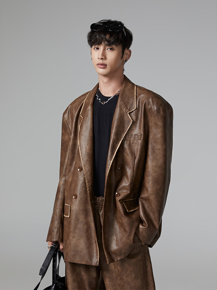 Argue Culture Ghostly Eyes and Spiny Spine Heavy-Duty Spine Rivet Embroidered Leather Jacket with Glossy Texture