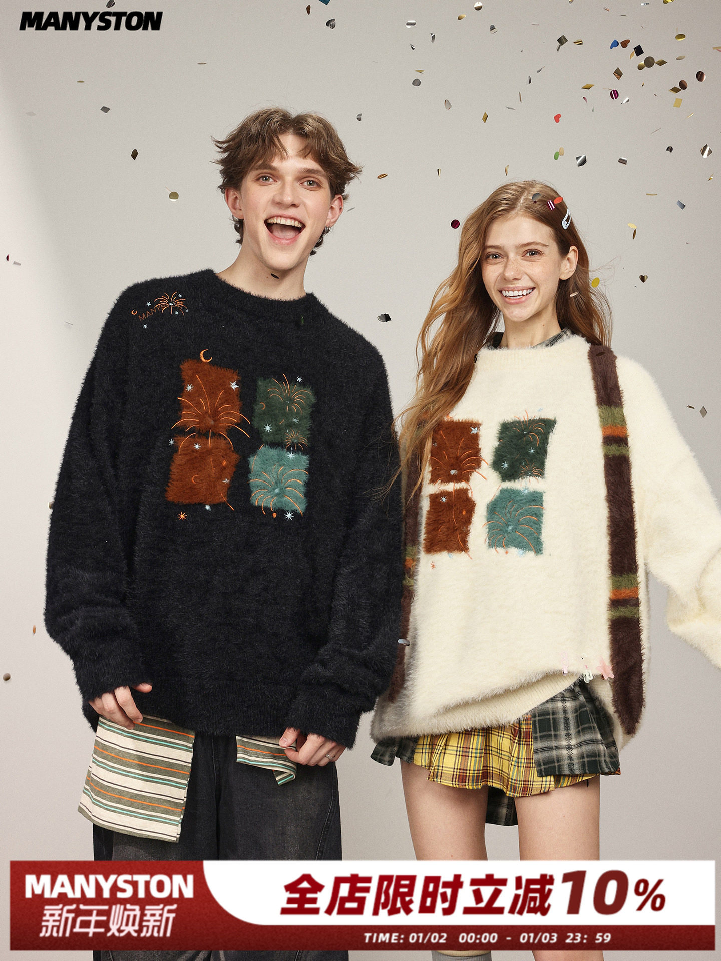 [Celebrity Style] Manyston American High Street Embroidered Sweater for Men, Spring and Autumn Couple's Round Neck Knitwear