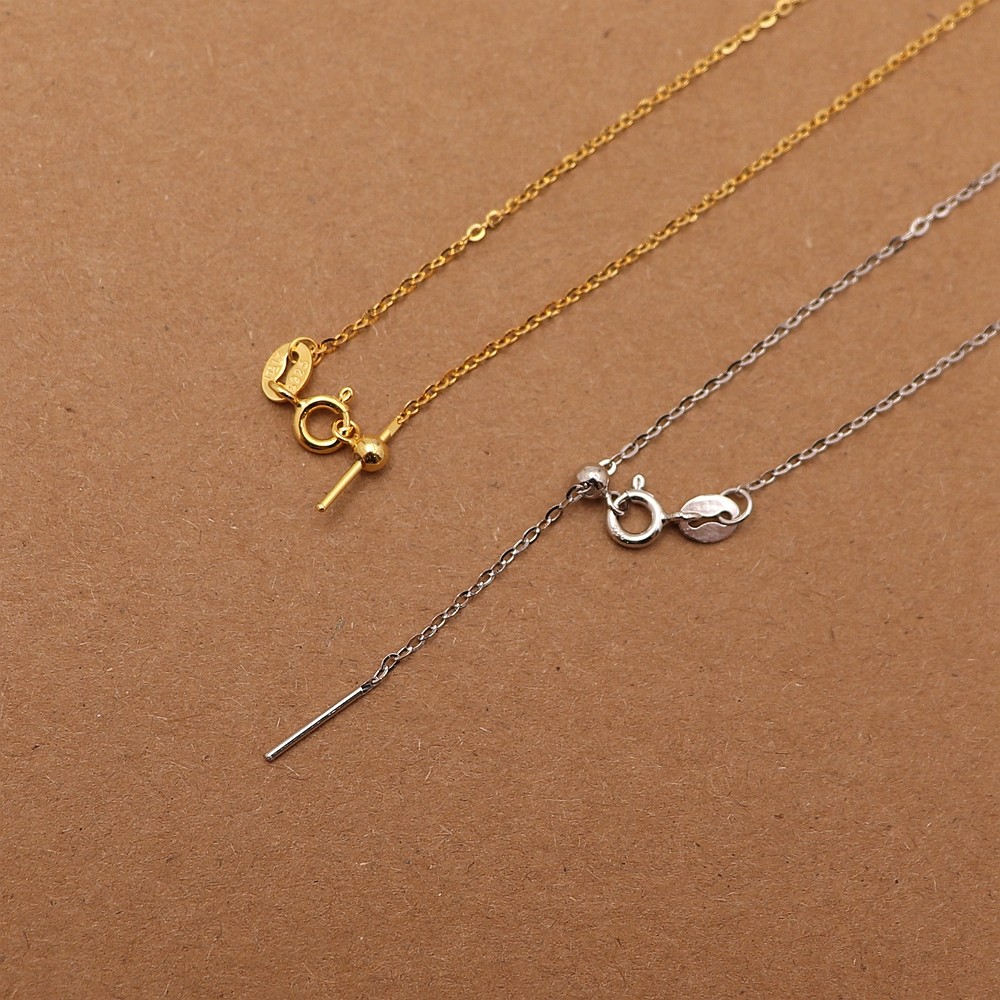 S925 Sterling Silver Necklace with Pin-Style Flash European Chain, Adjustable Chain, Collarbone Chain, O-Shaped Chain, Can Be Worn with Beads, Plain Chain, Bare Chain