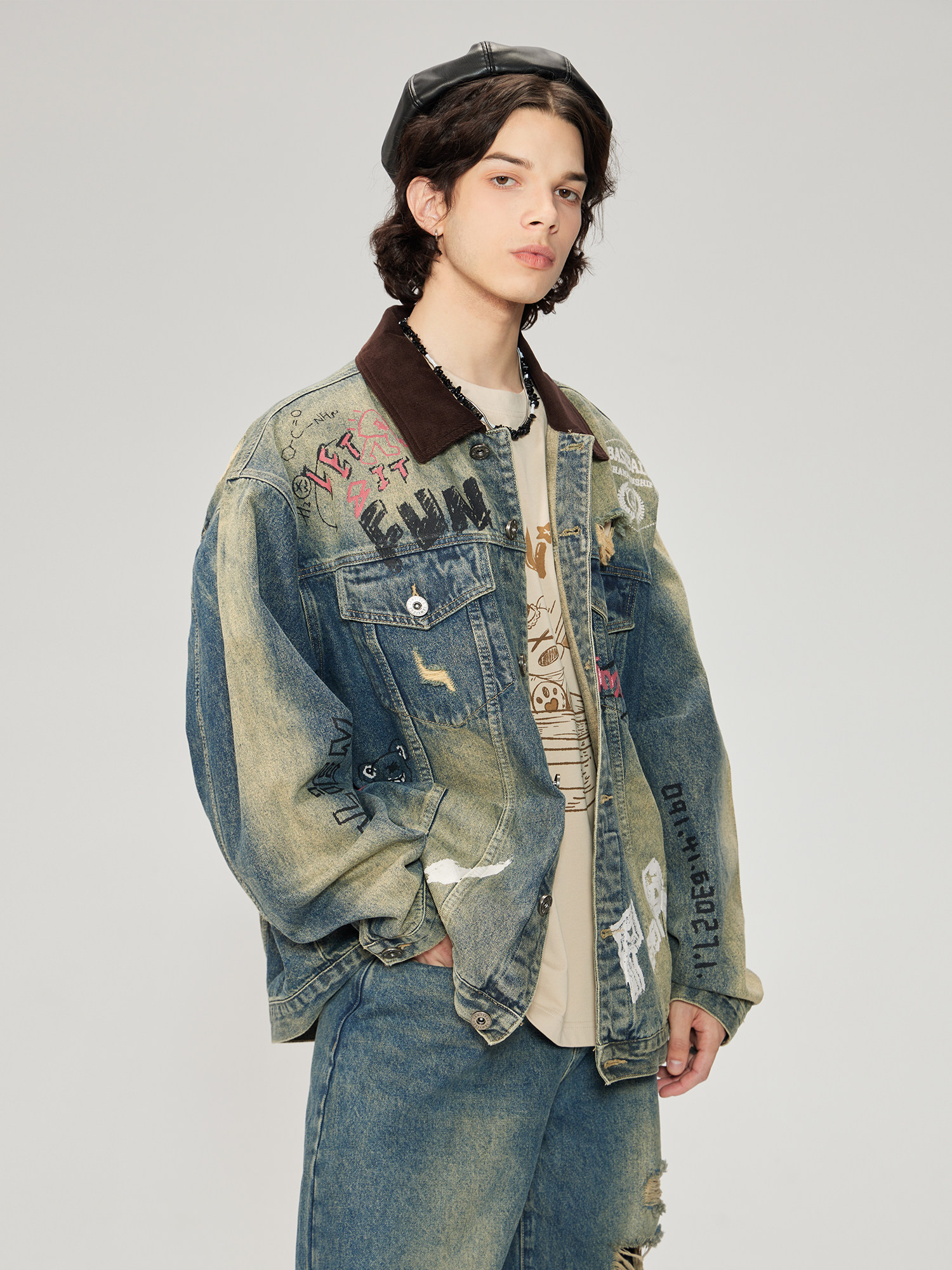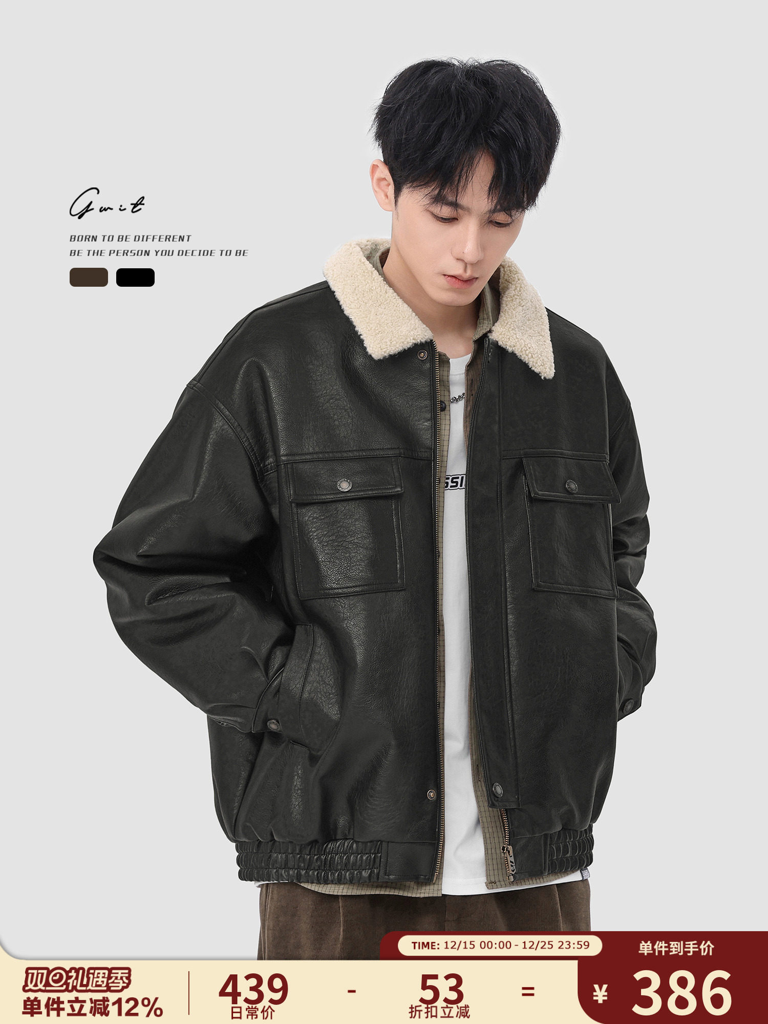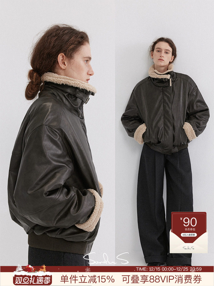 Sonders Imitation Lambswool, Voluminous and Loose-Fitting Vintage Textured Leather Jacket