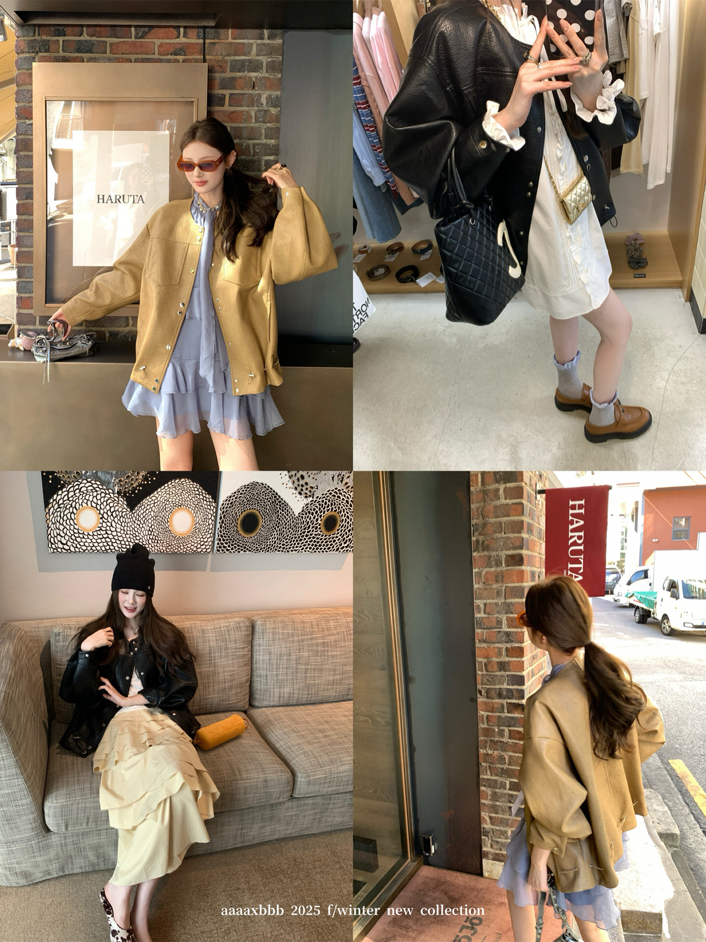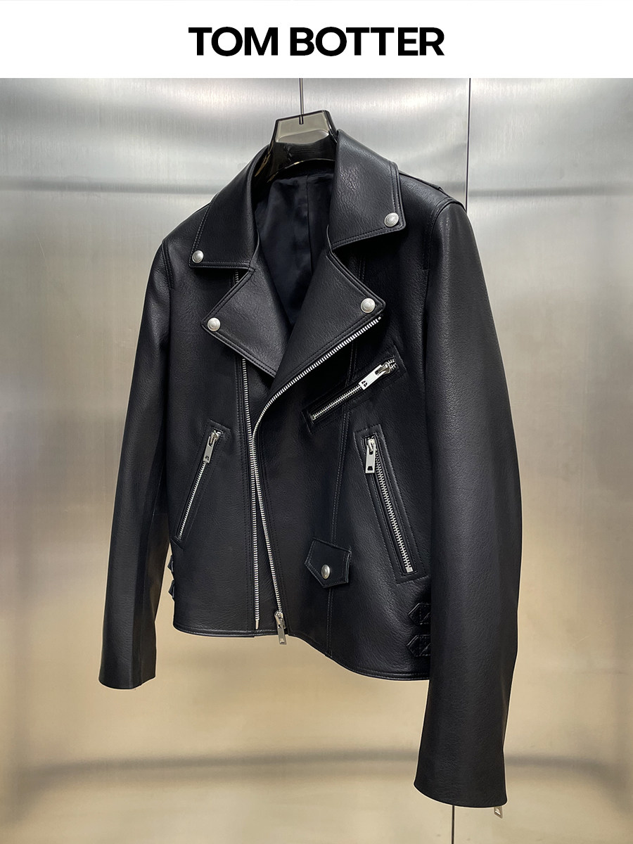 Aaaaxbbb Brule Coco Design-Inspired Hem Drawstring Leather Jacket, Two-Color Loose Top for Women, Autumn Style