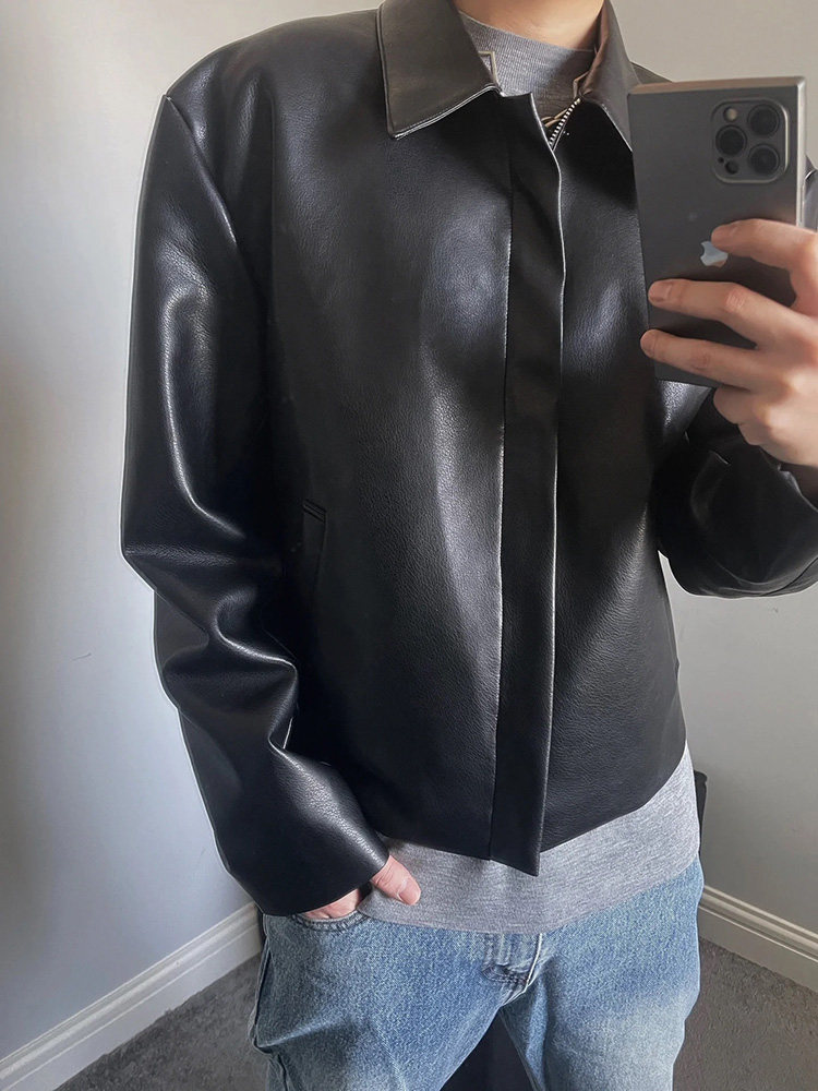 【In Stock 50% off 】Beams Lambskin Pu25Ss Loose American Retro Casual Biker Leather Jacket with Zipper