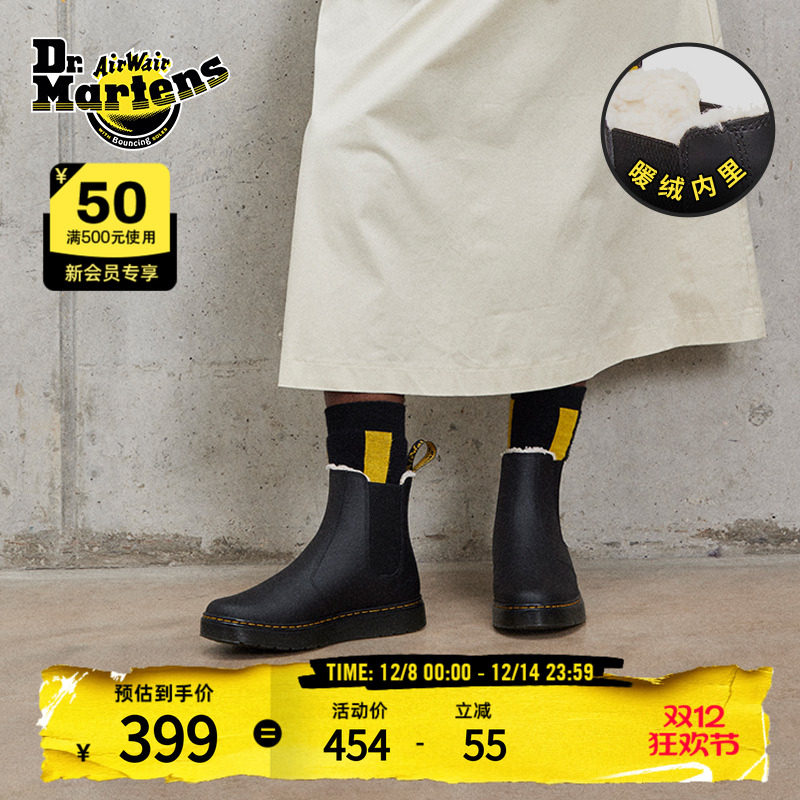 Dr.Martens Dorrian Women's Winter Fleece-Lined Thickened Warm Snow Boots Black Chelsea Boots