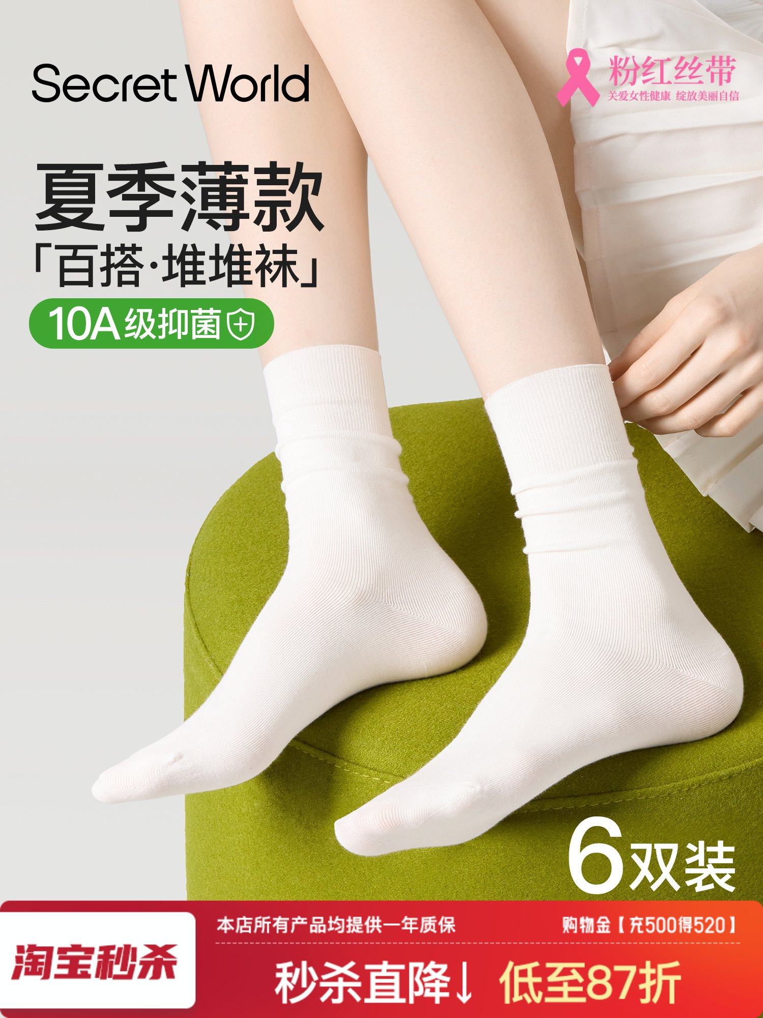 Women's Summer Thin Socks 10A Antibacterial Pure Cotton Yarn Maternity Socks White Slouchy Mid-Calf Socks 2025 New Hot Style