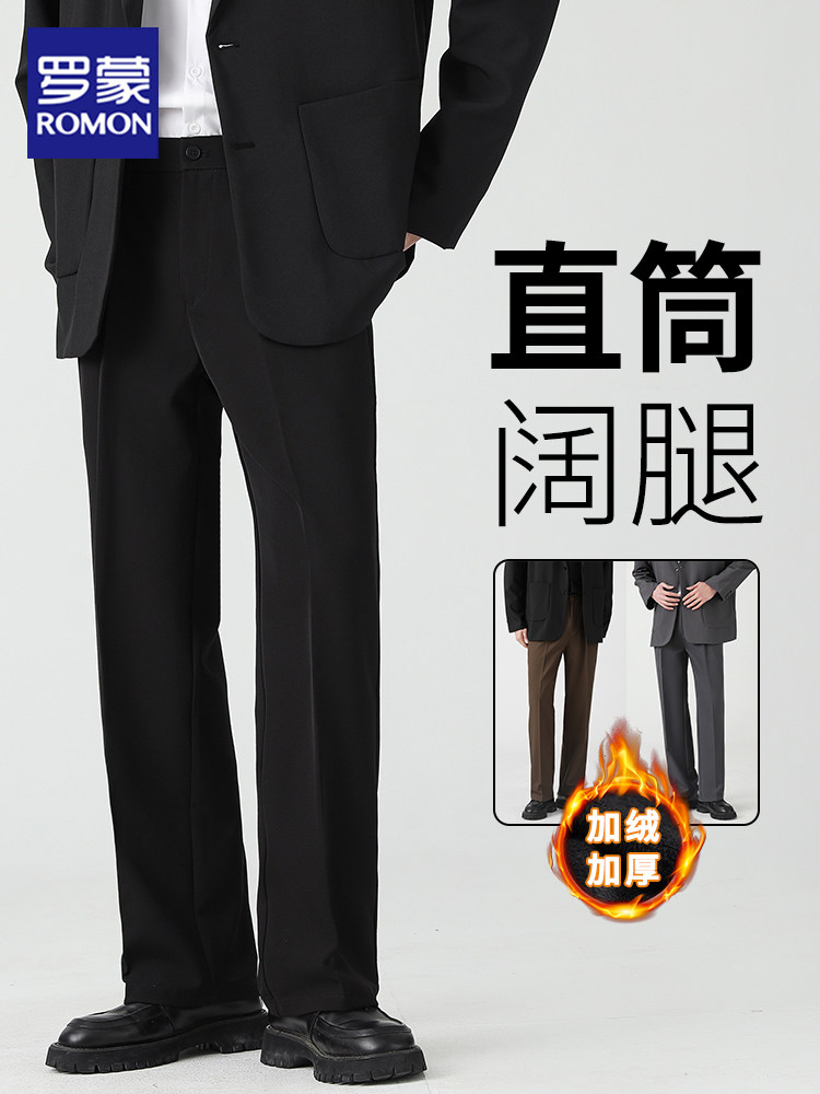 Romon Straight-Leg Wide-Leg Pants for Men, Autumn High-End Wrinkle-Free Drape Black Suit Pants, Loose Casual Dress Pants