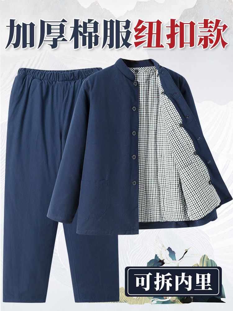 Dad's Winter Coat Men's Thickened Cotton Padded Jacket and Pants Set Chinese Style Cotton Clothing Button Handmade Cotton Suit
