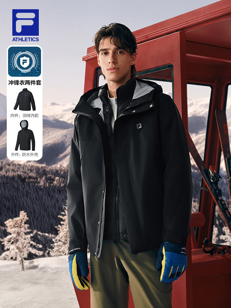 Huang Jingyu's Same Style Fila Men's and Women's Breathable Shell Jacket 25 Winter New Outdoor Three-In-One down Jacket