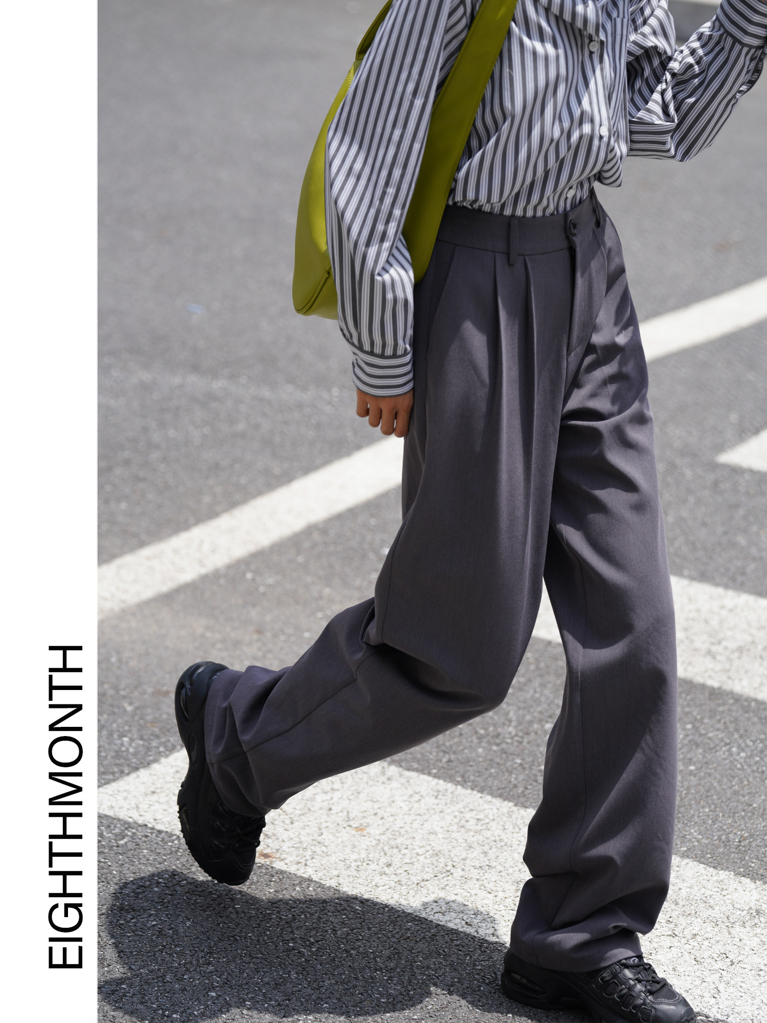 Em August Gray Suit Pants for Women, Autumn Season, Slimming High-Waisted Casual Wide-Leg Pants, Petite Straight-Leg Pants