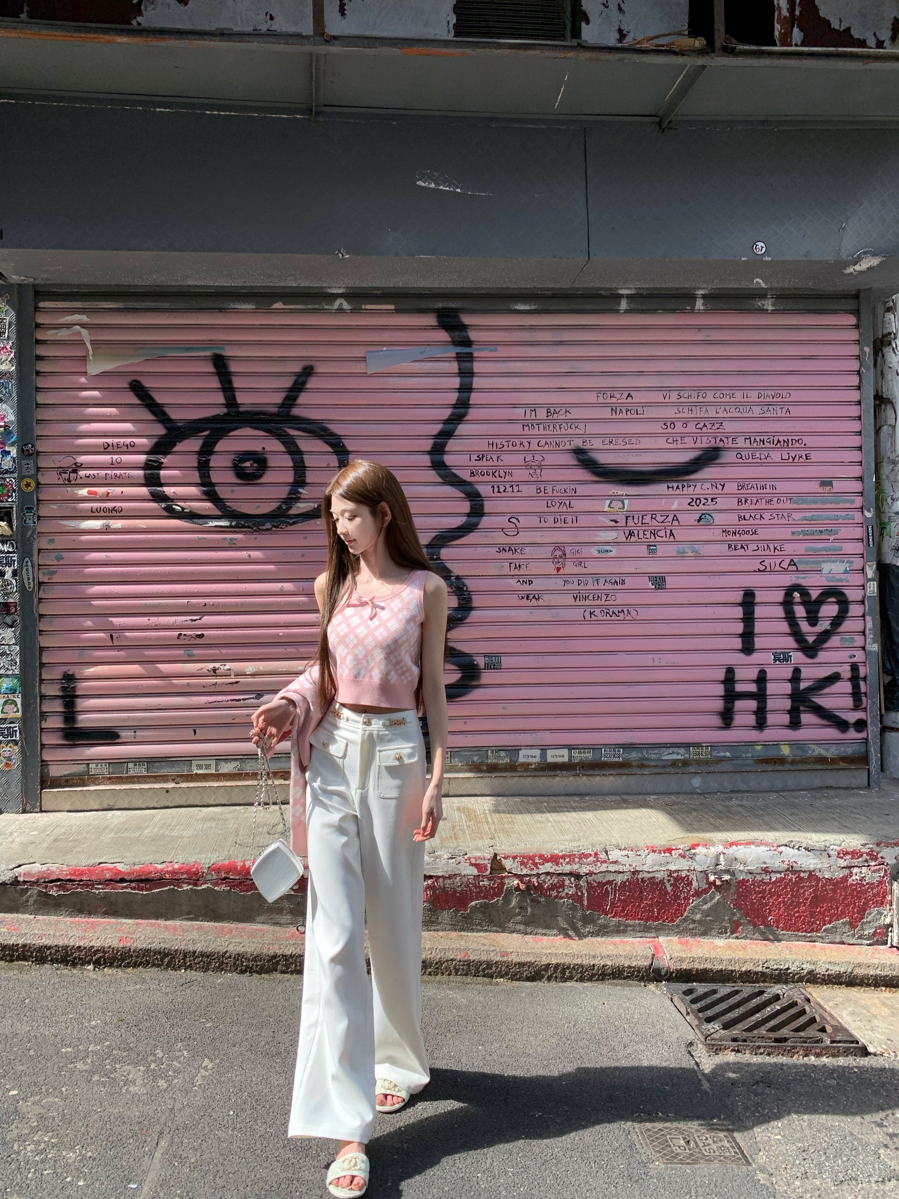[Small Quantity in Stock] Chicyou Classic Gold Buckle Chain Casual Pants Black and White Fashionable Straight-Leg Pants Suit Pants for Women