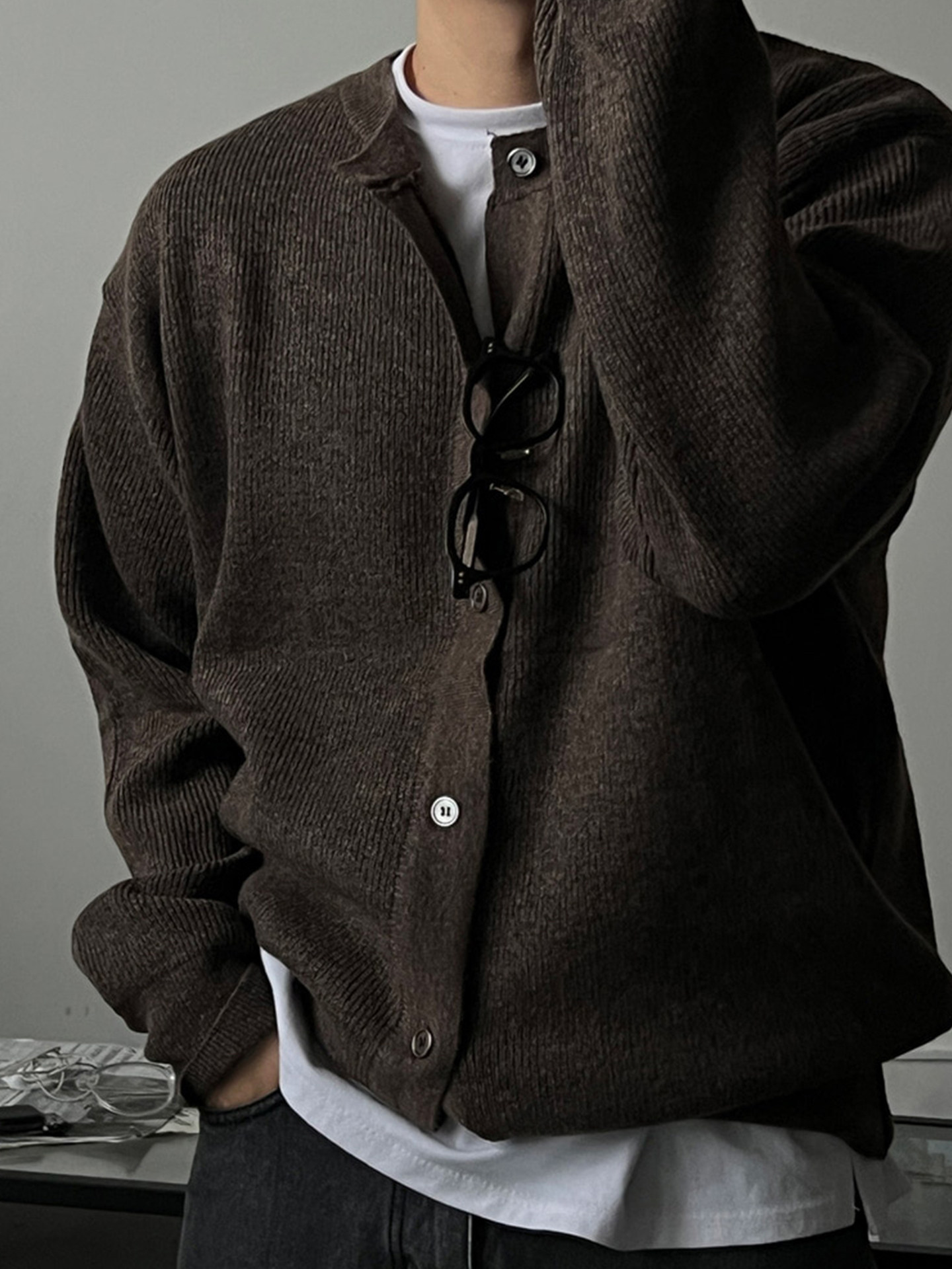 Ssumenam「Old Money Style Knitted Cardigan」High-End Sweater for Men, Autumn and Winter Warm Brown Coat