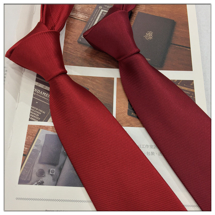 Men's Burgundy Twill Tie Maroon Chinese Red Dark Red Performance Choir Event Korean Style 8cm